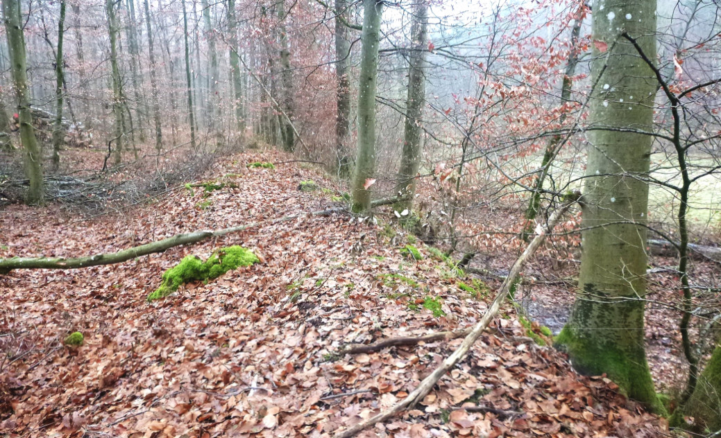 Wegbeschreibung: An einer unzugänglichen, tiefen Klinge südlich von Sternenfels beginnt dieser Landgraben, mit zwei prägnant gesetzten Grenzsteinen. Taktisch durchdacht wird hier ein westlicher Zugangsweg vom Derdinger Horn/ Rheinebene gesperrt.